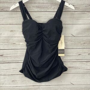 Profile by Gottex Sweetheart 32D Cup Tankini Swim Top Black Tummy Control New