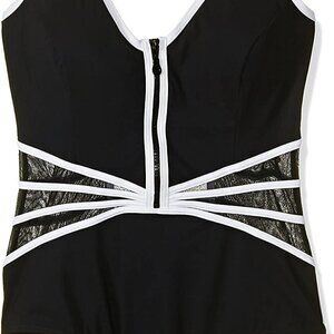 NEW Profile by Gottex Tummy Control Swimsuit with Black Mesh, Size 6