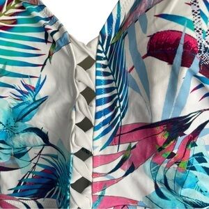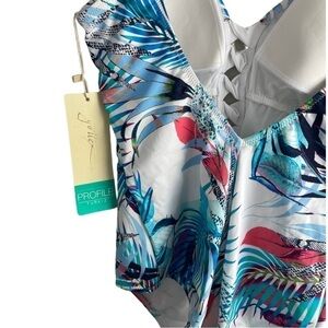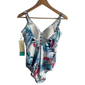 Profile by Gottex White Blue Floral Cut Out One Piece 14 Swimsuit