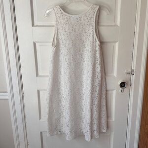 Profile by Gottex White Sheer Floral Lace Swim Coverup Dress Stretch Hi-Low Hem