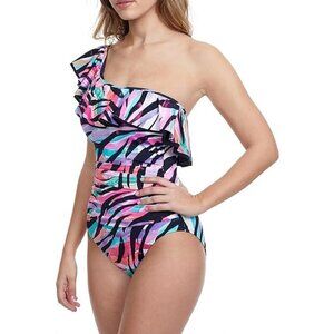 The Gottex 'Wild Parade' One-Piece Swimsuit featuring one-shoulder styling, allover ruching and an eye-catching animal-inspired print.