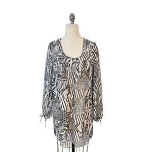 Profile by Gottex Black Gray Long sleeve Swimsuit Cover Up Medium