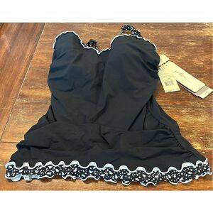 Profile by Gottex Harmony Navy Ruffle Trim Women’s Tankini Bathing Suit Top Swim Essential