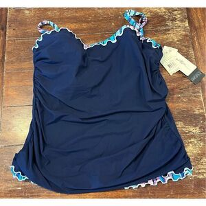 Profile by Gottex Harmony Plus Size Womens Ruched Tankini Top with Underwire Foam Cups and Ruffle Trim Strap