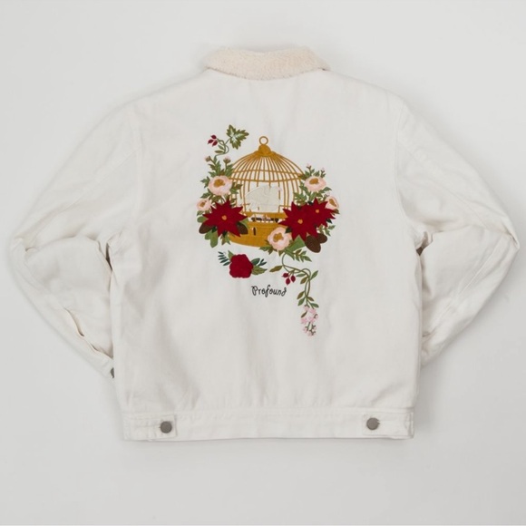 Profound Aesthetic white denim fleece lined trucker jacket | L | embroidered bk