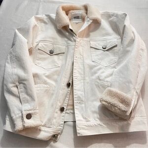 Profound Aesthetic white denim faux fur lined jacket. Size Large.