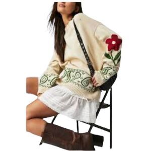 Profound Distressed Pullover Floral Paisley Knitted Sweater Womens Cream Small