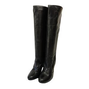 Progetto Black Leather Knee High Pull On Boots Women's Size 38 US Size 7.5 in Good Used Condition
