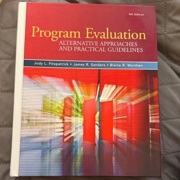 4th Edition textbook on program evaluation. Features a vibrant cover design. Used book, good condition ISBN: 9780205579358