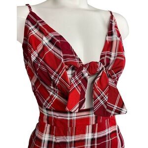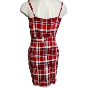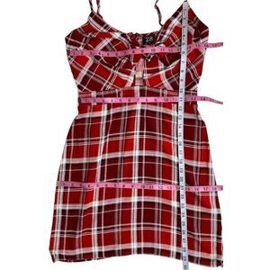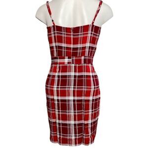 Project 28 Mini Dress Women's MEDIUM Red White Black Plaid Adjustable Straps NEW