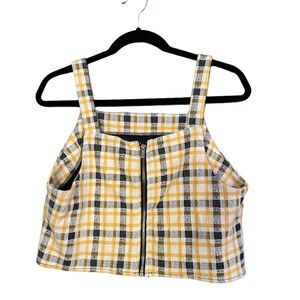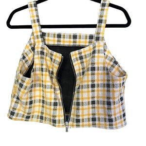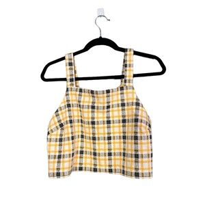 Project 28 NYC Size XL Yellow Checkered Plaid Square Neck Party Crop Top