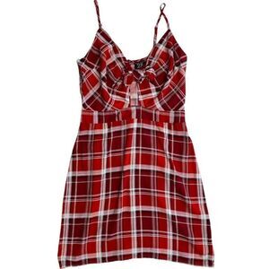 Project 28 Mini Dress Women's LARGE Red White Black Plaid Adjustable Straps NEW