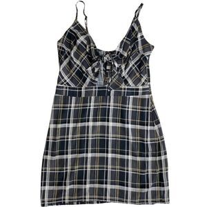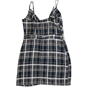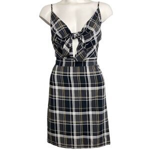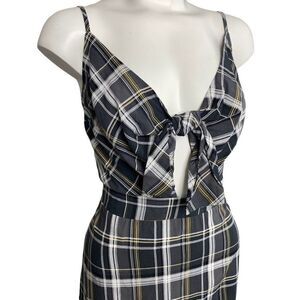 Project 28 Mini Dress Women's XL Gray White Black Plaid Adjustable Straps NEW