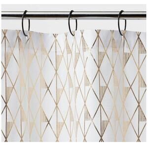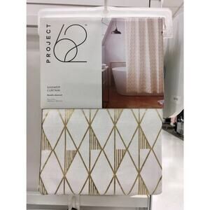Elevate your bathroom decor with this stunning Project 62 shower curtain! Featuring a chic gold and white abstract diamond pattern, this curtain will add a touch of modern elegance to your space.