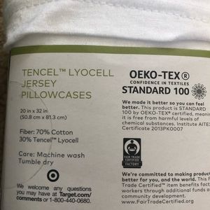 Tercel Lyocell Jersey pillowcases. Two standard pillowcases 20”x32”. 70% cotton 30% Tencel Lyocell.