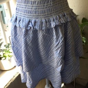 Cute as a beach cover up. Blue and white tiered smocked skirt. Danish designer