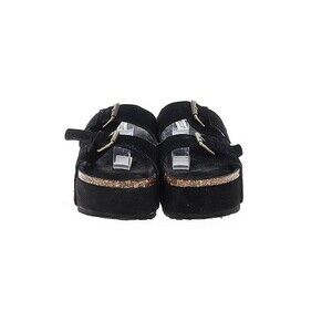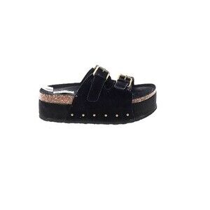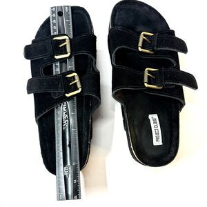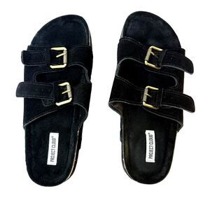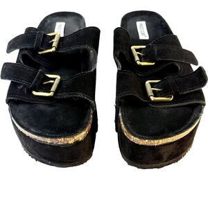 Project Cloud Black Suede 3in Platform Sandals | Double Straps & Adjustable Gold Buckles | Women's Size 11