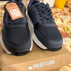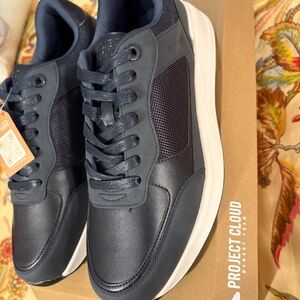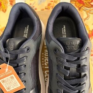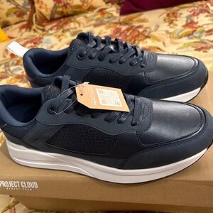 These sneakers are brand new and never been worn. The sneakers are navy size 11 and string up the front, There is a tag attached. These sneakers have the memory foam inside them.