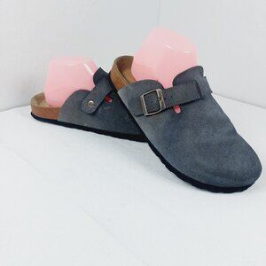 Project Cloud Women's Grey Suede Leather Memory Foam Slip-on Clog Mules Size 10