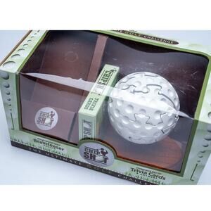 Beautiful Golf Ball 3D jigsaw wooden puzzle, made of 14 pieces and a base. Come included with 50 sports Trivia Cards.
