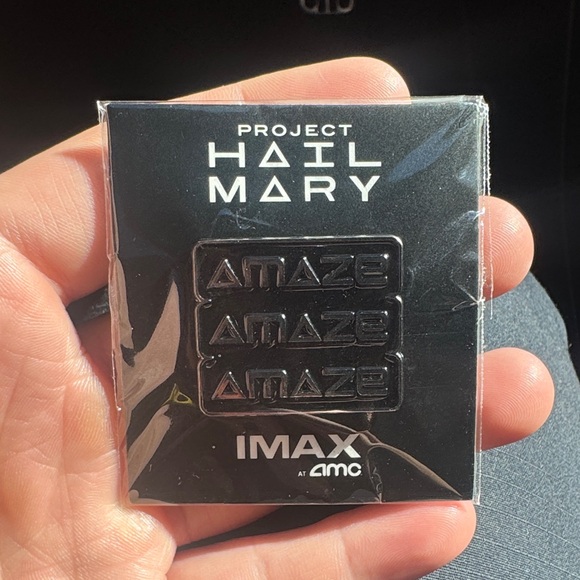 Black Project Hail Mary pin with 'Amaze' design. IMAX branding included.