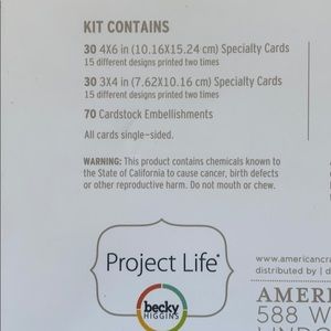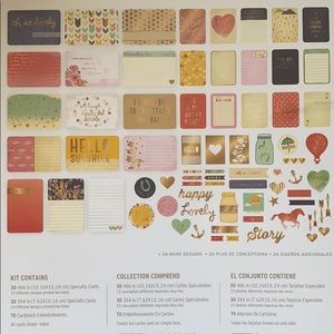 Brand new in box. 130 pieces. Brighten your memories with these beautiful cards and embellishments.