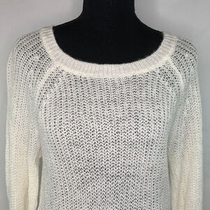 A beautiful and deicate ivory colored large knit long sleeve blouse with a tie bow around the wrists by Project Naadam. Size S