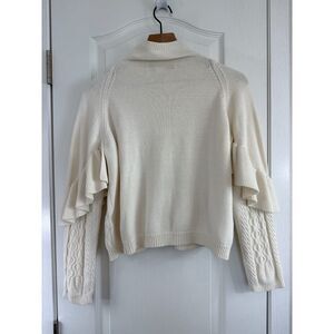 Project Naadam Women's Ruffle Cream Ivory Sweater Cotton Acrylic Size S