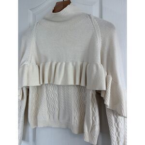 Project Naadam Women's Ruffle Cream Ivory Sweater Cotton Acrylic Size S