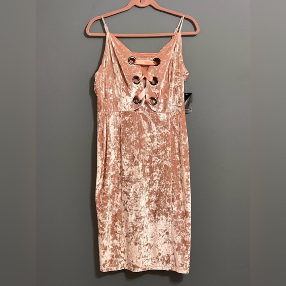 Elevate your night out with this stunning Project RUNWAY bodycon dress. Crafted in a luxurious pink and velvet hue, this sleeveless midi dress features delicate adjustable spaghetti straps and a form-fitting silhouette. Perfect for cocktail occasions, its elegant design ensures you make a memorable entrance.