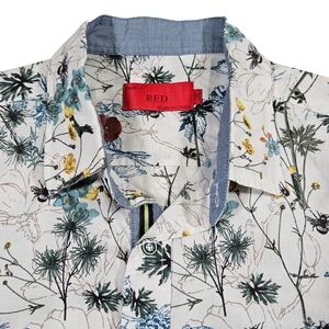 Project Red Men's 100% Cotton Short Sleeve Button Down, White Floral, Medium