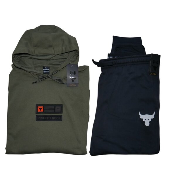 Project Rock Men's Size 3XL Sweatsuit 2 PC French Terry Tracksuit Army Green NWT