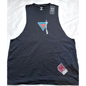 Project Rock Shirt Mens XL Black Under bull Armour Tank Top Sleeveless run gym