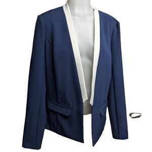 Project Runway Blazer Women Size Medium Navy Blue w/White Trim Jacket M