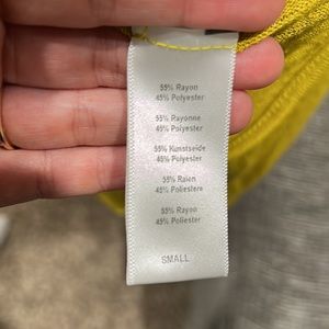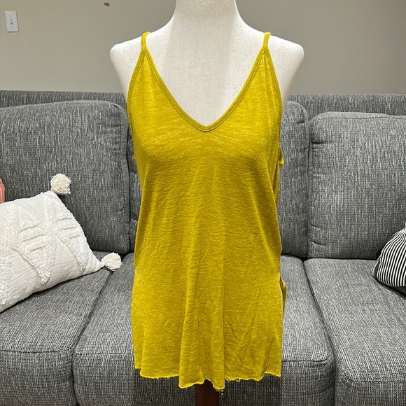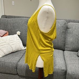 Super soft material, high-low style in a beautiful mustard color. Great for layering or wearing solo and showing off your back, gently used condition with few signs of wear. Unfinished edge is part of the design.