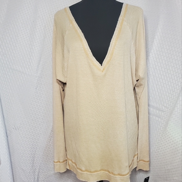 Project Social T Tanner Burnout Thermal V-Neck Top. Tan(iced coffe). Size L. measurements taken layed FLAT. pit to pit - 25 inches, pit to sleeve - 19 inches, length - 21 inches. New with Tags