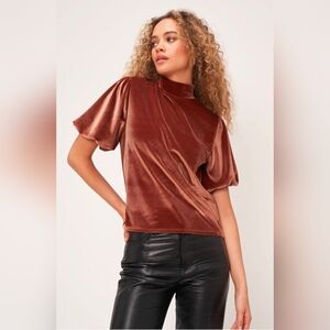 Project Social T Cinnamon Channing Velvet Bubble sleeves Top