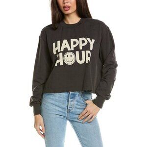 Project Social T Happy Hour Boxy Crew Sweatshirt Size Small DW Black