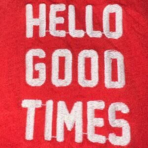 Project Social T Hello Good Times Tee Loose Fit Pretty red white letters Sz S