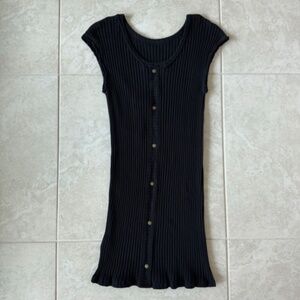 Introducing the Project Social T Marissa Snap Back Sweater Rib Mini Dress in Black. This flattering dress features ribbed fabric and dropped-shoulder sleeves, making it a comfortable and stylish choice for any occasion. The snap closures add a unique touch to this dress, while the 96% cotton and 4% spandex blend ensures a soft and stretchy fit. Made in the USA, this dress is a perfect addition to your wardrobe for year-round wear. Pair it with your favorite accessories for a chic and trendy look.