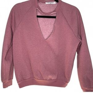 Cozy up in style with this Project Social T Mauve V-Neck Sweater, featuring a chic cutout detail for a modern edge on a classic silhouette. It's the perfect piece to elevate your casual wear from basic to effortlessly fashionable. This sweater is ideal for achieving the 'Athleisure Chic' look when paired with leggings or for a relaxed 'Y2K' vibe styled with low-rise jeans.