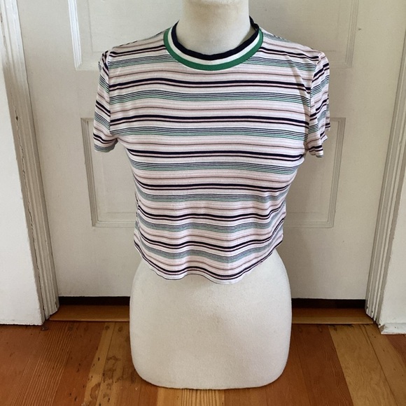 Project Social T Urban Outfitters short sleeve striped striped cropped tee shirt size medium