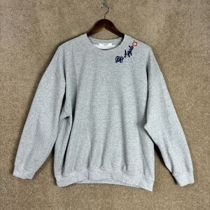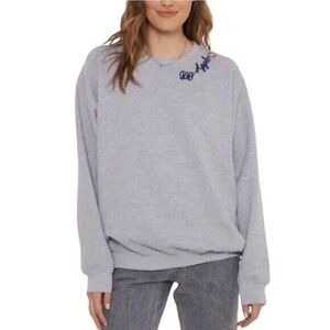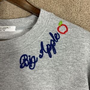 Project Social T Sweatshirt Womens L/XL Gray Embroidered Big Apple Fleece Crew