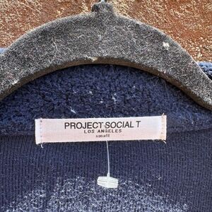 Project Social T Women Fleece Button Front Crop Collared Sweater Blue Small NEW