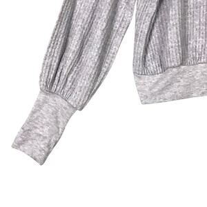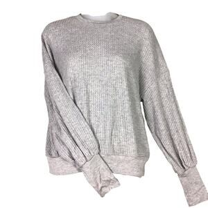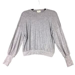Project Social T Womens Small Waffle Knit Thermal Long Sleeve Top Gray Solid