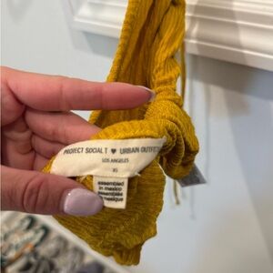 This vibrant yellow crop top from Project Social T features a sleeveless design with a ribbed texture, offering a stylish and comfortable fit. The backless style adds a touch of allure, making it perfect for casual outings or summer gatherings. Embrace the chic and breezy vibe with this standout piece in your wardrobe.