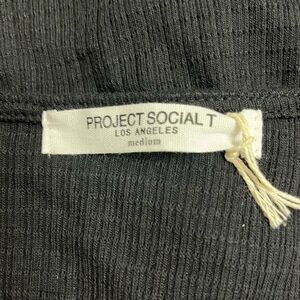 Project Social T Womens Medium Easy Breezy Top Cropped Tee Black Plunge Neck NWT
