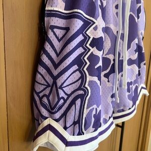 Project X ladies basketball shorts medium. Hawaiian style Camo. Purple.
