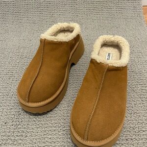 Comfortable brown suede clogs with cozy shearling lining. Perfect for casual wear. Size 8 only worn once or twice around the house.