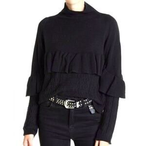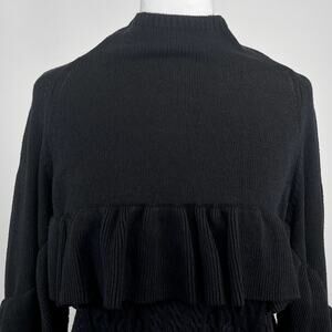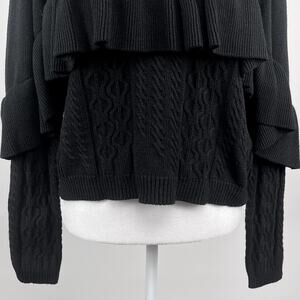 Project x Naadam Volta Mock Neck Cable Knit Sweater with Ruffle Size XS Black